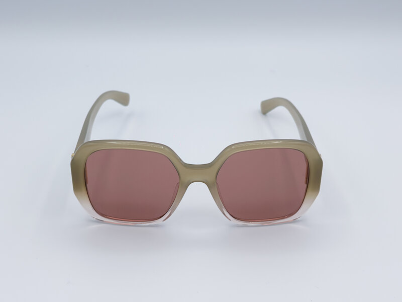 • Codice colore 98s ( beige ) • Montatura in bioacetato • Aste con cerniera e dettaglio logo in metallo con finitura oro • Lenti rosa • Calibro 54 • Ponte 19