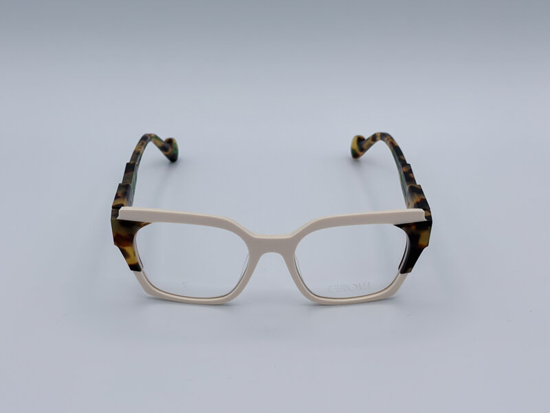 • Colore WhiteHavana • Montatura in acetato • Front bianco • Aste Havana con riflessi gialli • Calibro 50 • Ponte 19